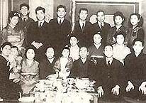 0歳当時の父正之助(後列左から4人目)と家族、友人、従業員達